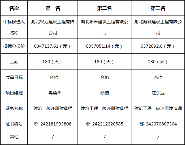 本項目于2023年05月11日在湖北省電子招投標(biāo)交易平臺發(fā)布招標(biāo)公告,2023年06月06日在松滋市開標(biāo)室(1)開標(biāo),并于2023年06月06日完成評標(biāo)工作。根據(jù)評標(biāo)委員會提交的報告,松滋金投商業(yè)開發(fā)有限公司已經(jīng)確認(rèn)評標(biāo)結(jié)果,現(xiàn)進行評標(biāo)結(jié)果公示。