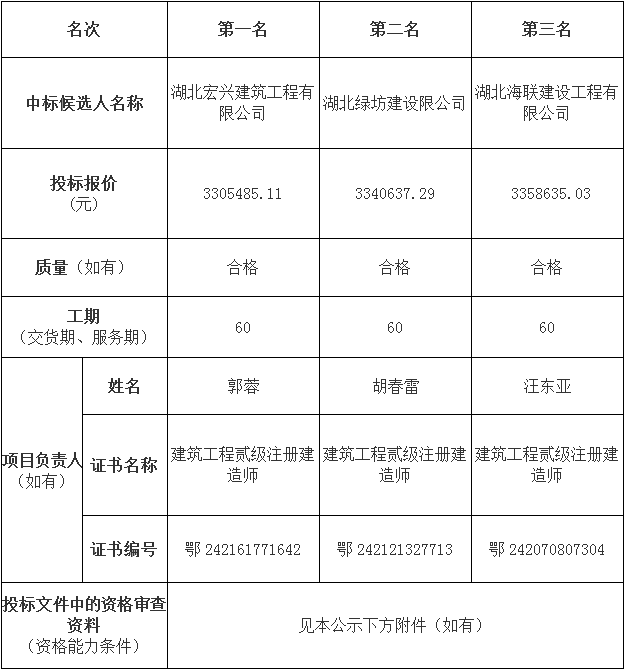 松滋金投永鑫勝商貿有限公司生活超市劃子嘴店建設項目松滋金投永鑫勝商貿有限公司生活超市劃子嘴店建設項目于2023年07月05日在湖北省電子招投標交易平臺發布招標公告,2023年07月26日在松滋市開標室(2)開標,并于2023年07月26日完成評標工作。根據評標委員會提交的評標報告,松滋金投永鑫勝商貿有限公司已經確認評標結果,現進行評標結果公示。