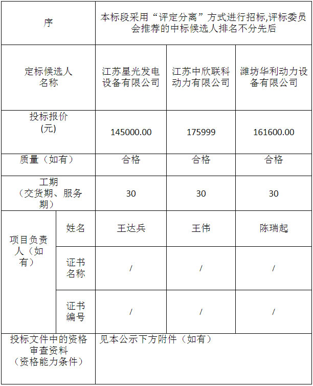 金投?彩虹灣一期(S1號樓綜合商業)及配套工程金投?彩虹灣(一期S1#樓綜合商業)柴油發電機組采購及安裝項目于2023年11月30日在湖北省電子招投標交易平臺發布招標公告,2023年12月25日在松滋市開標室(2)開標,并于2023年12月25日完成評標工作。根據評標委員會提交的評標報告,湖北松滋金投置業有限公司已經確認評標結果,現進行評標結果公示。