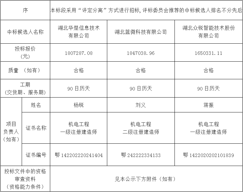 金投?新城臻品金投?新城臻品建設項目弱電智能化工程于2024年01月26日在湖北省電子招投標交易平臺發(fā)布招標公告,2024年02月27日在松滋市開標室(2)開標,并于2024年02月27日完成評標工作。根據評標委員會提交的評標報告,湖北松滋金投置業(yè)有限公司已經確認評標結果,現(xiàn)進行評標結果公示。